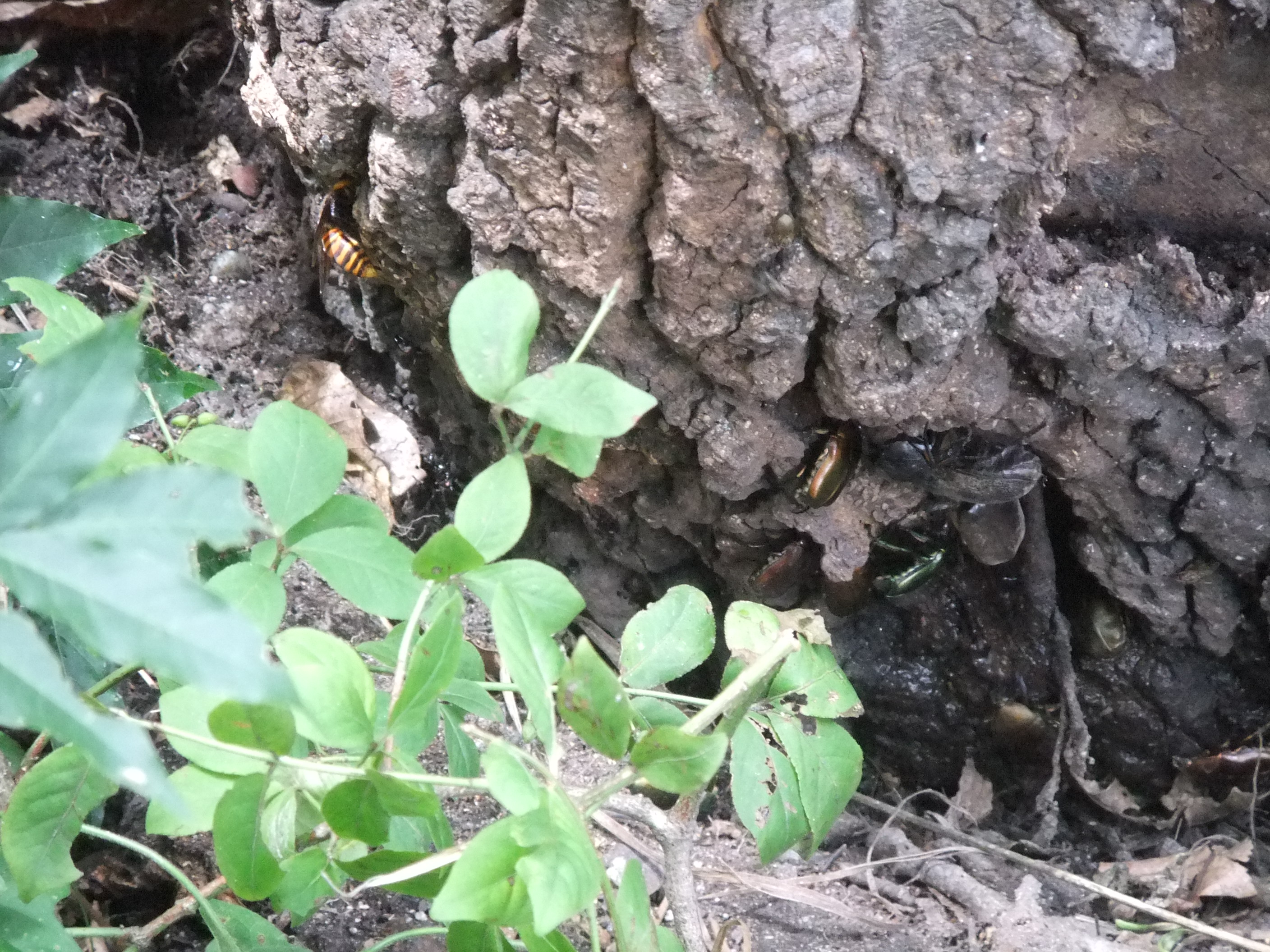 子どもたちに教えてもいいのだが、スズメバチも一緒に樹液を吸っていて近寄ると攻撃してくる